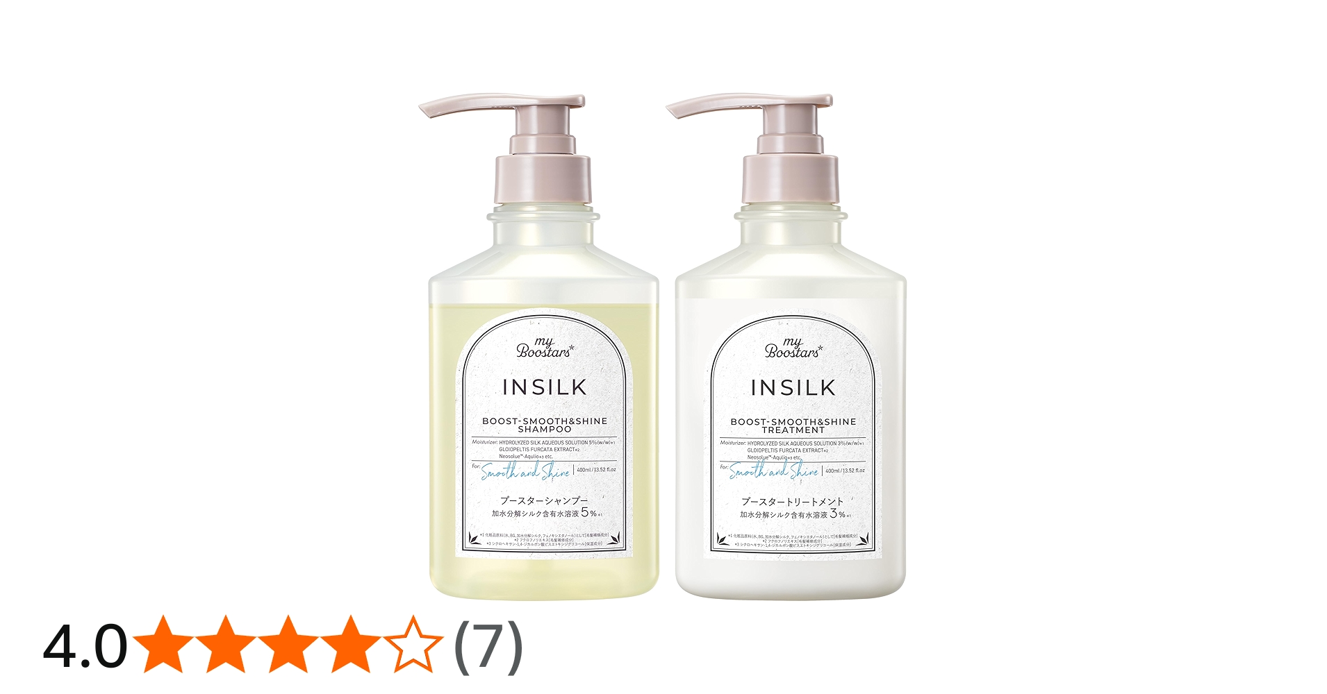 マイブースターズ インシルク シャンプー・トリートメント それぞれ1,600円くらい。